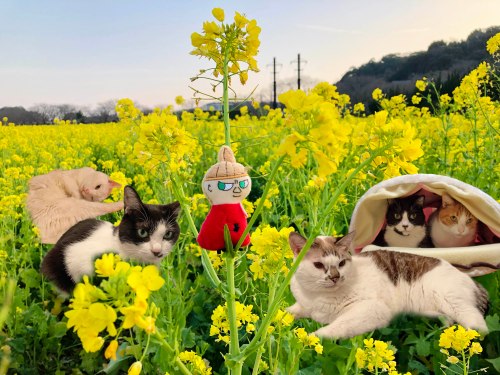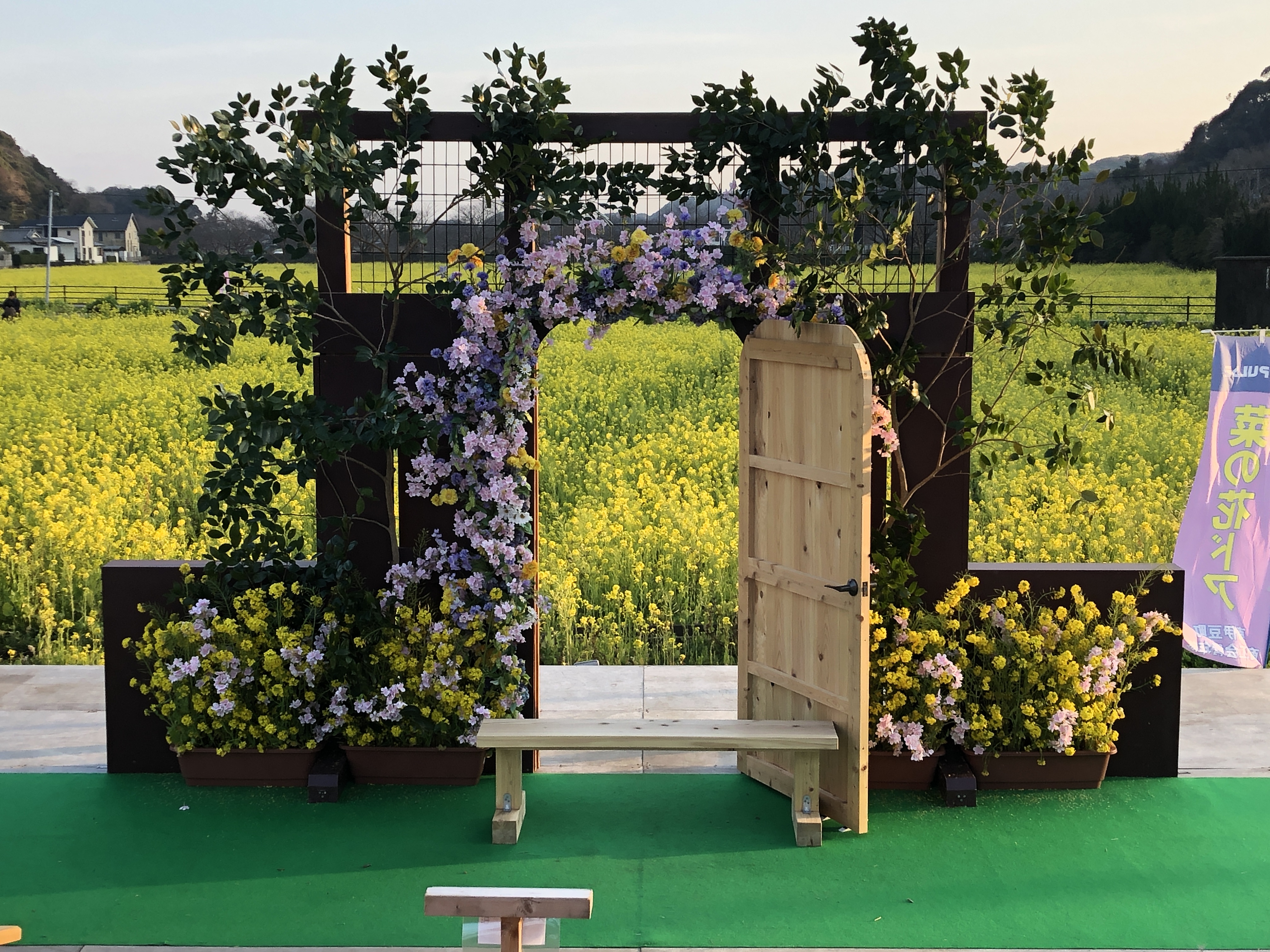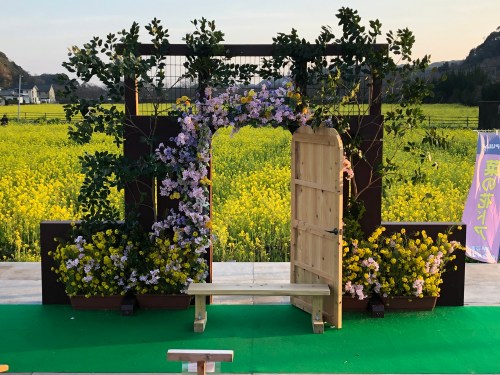 菜の花畑では紋付袴、色打掛のペアがウェディングフォトを撮っていたようです