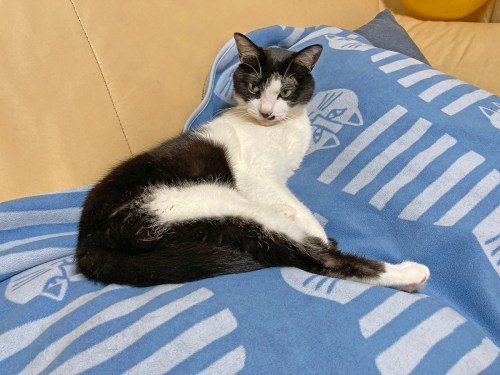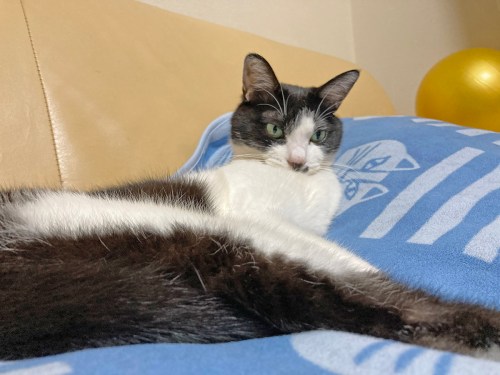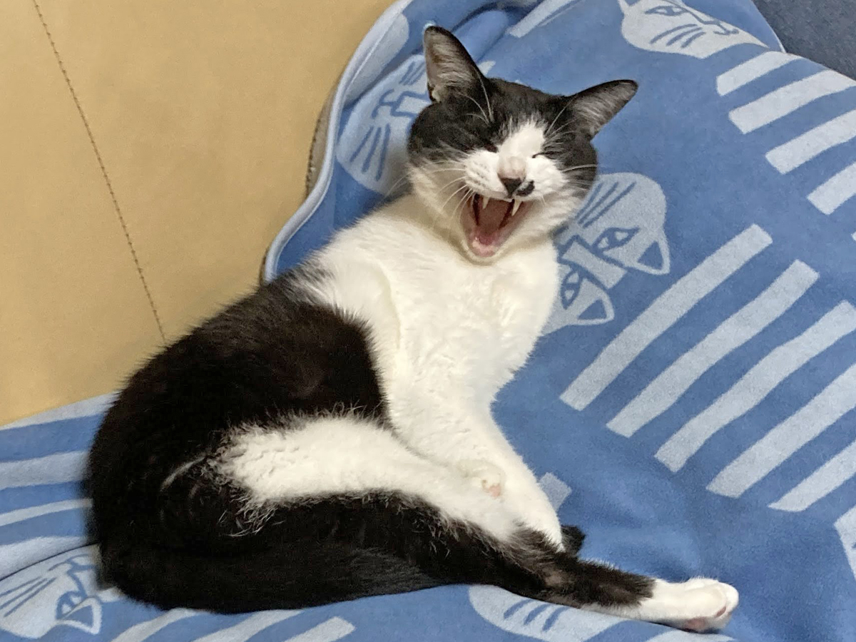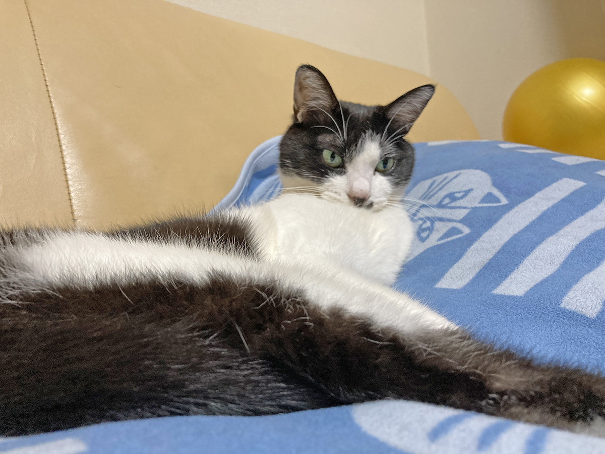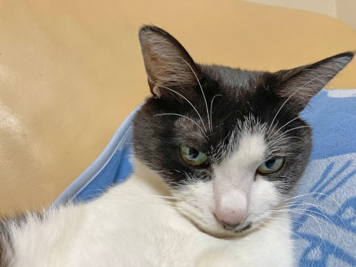 前の画像のように黒白のハチワレ猫(雑種やアメリカンショートヘアに多い柄)も、個体差次第でよく出腹ーになります。ラグドールなどの大型で穏やかな猫種は「belly up」が特に有名で、だらんと脱力した姿が可愛いと人気です。