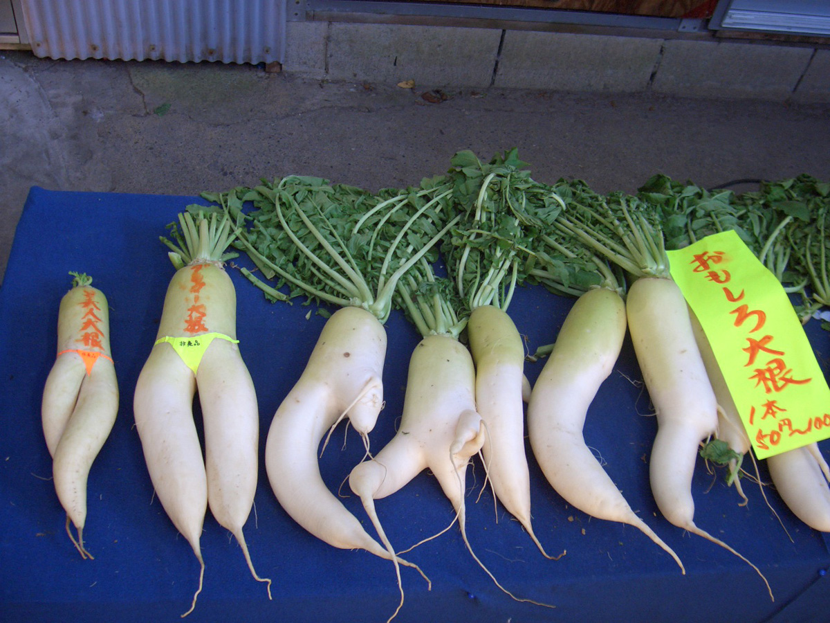 4. 左の二つの大根は、プレミアムで、1本1000円とみました。もちろん買い手は野郎なんでしょうね