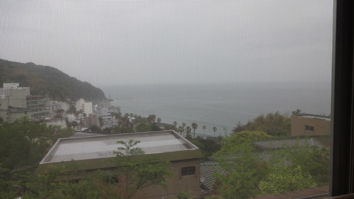 分園の休憩所から海が見えるのですが、天気が悪かったのが少し残念…。