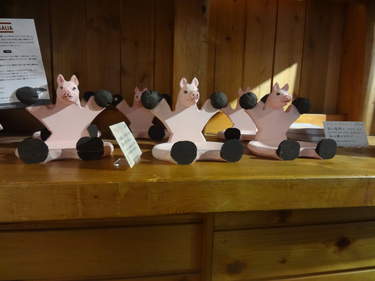 豚さんのオブジェや人形の後に豆さんズが