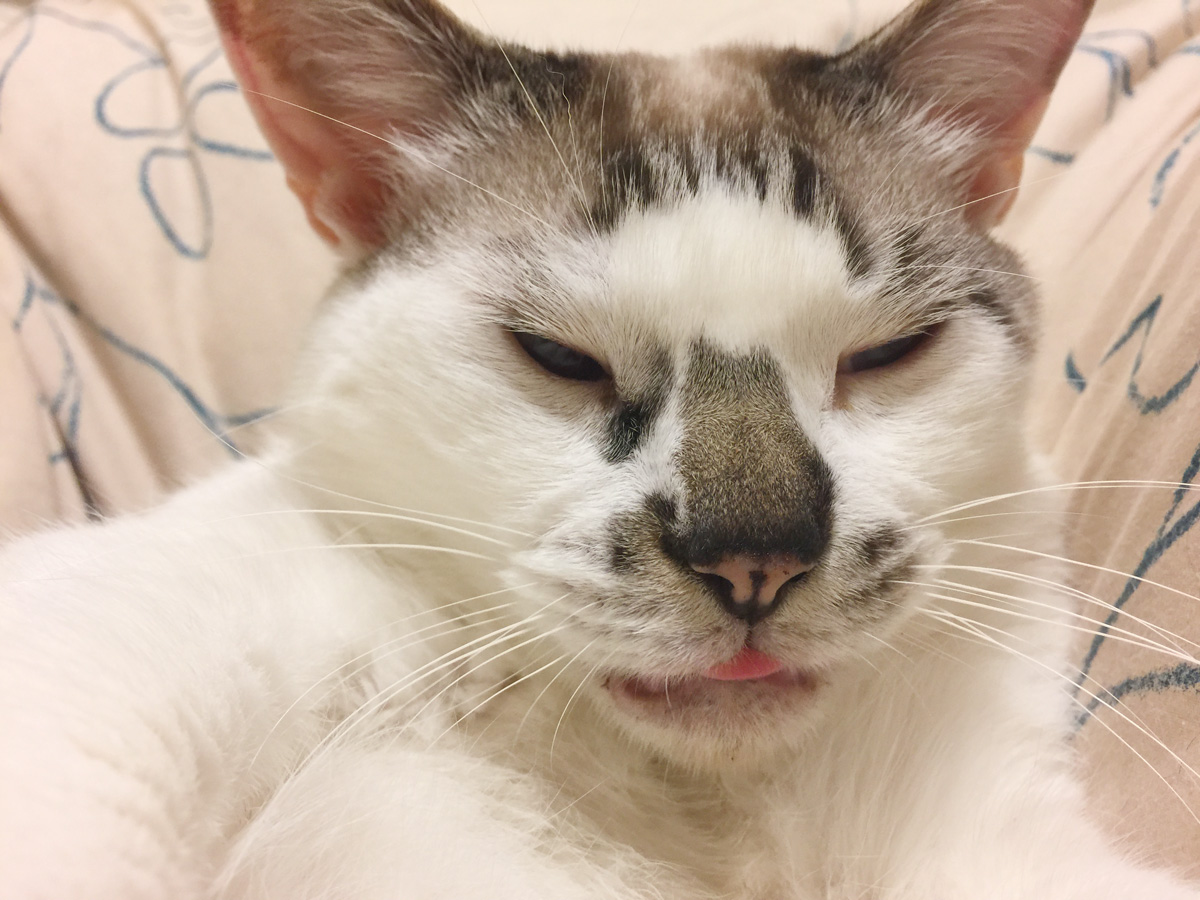 ももしきの パグ猫の尾の 短か尾の にがにがし朝を ひとりかも寝む