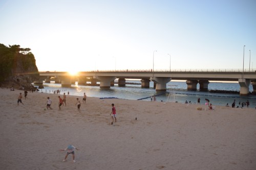 朝出発で昼に沖縄着、昼をA&Wで食べて車で寄り道しながら北へ、美ら海水族館を見終わった頃には日が落ち始めていて、目の前に広がるエメラルドビーチから見る夕日が最高でした。