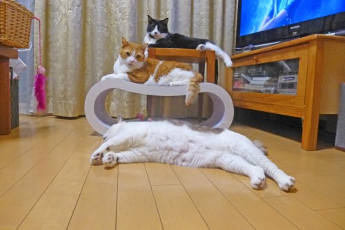 小型ドローンに伸びる手を必死に押さえる南米ぬこであつた・・・orz