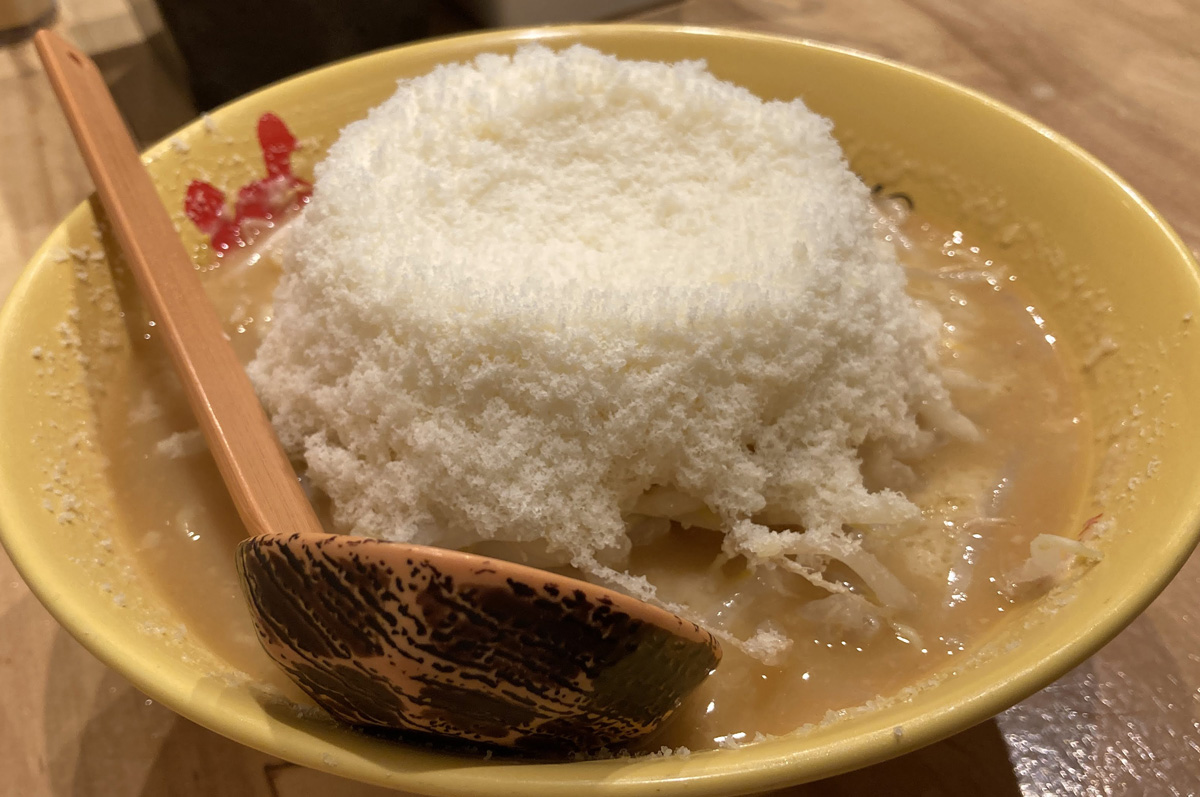 食べてみたいけど行けないので、ラーメン作ってパルメザンチーズ1本ふりかけます。