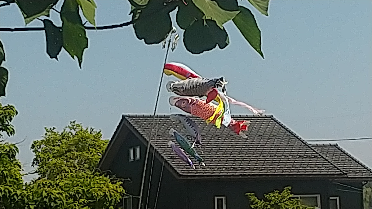 道中、鯉のぼりが泳いでいました。